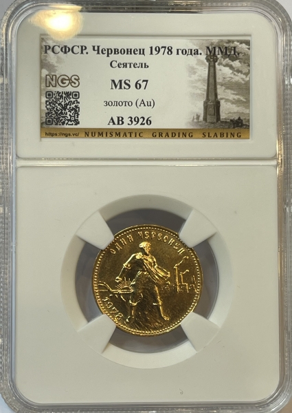 Золотая монета Червонец Сеятель 1978г., в слабе NGS MS 67